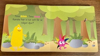 NYHED! Er de store papbøger et hit hos børnene, så er denne Babblarna bog noget for dig. Schhh schhh, stille stille, vi lister os frem! Kan du se, hvor dyrene gemmer sig? I denne spændende bog tager vi med Babblarna ud i skoven og leder efter dyr. Siderne er fyldt med skov og natur, og sammen med Babblarna lærer børnene, hvad de vilde dyrs navne er. Som i alle Babblarnas bøger er der god mulighed for, at børnene selv er aktive under læsningen. Så at læse om turen i skoven bliver en sjov og sprogudviklende oplevelse for både børn og voksne. OBS! Tekst og tegn er på svensk.  Bogen måler 223x220x24 mm og er lavet i kraftigt karton.