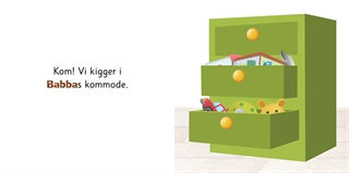 Med bogen I Babbas kommode går I på opdagelse og finder ting i Babbas kommode.. Men hvis er alle tingene? Sammen hjælper I Babba med at dele tingene ud til sine venner. Bogen har fokus på spørgeordet "Hvis", men også på de små, men vigtige vokal- og konsonantforskelle i Babblarnas navne. F.eks. er det Bobbos bog og bold. I legen med Babblarna udvikles sproget, og denne bog kan fint suppleres med konkreter af de ting, som I møder i bogen. Bogen har 34 sider. Trykt på giftfrit papir. Mål: 24x24 cm.