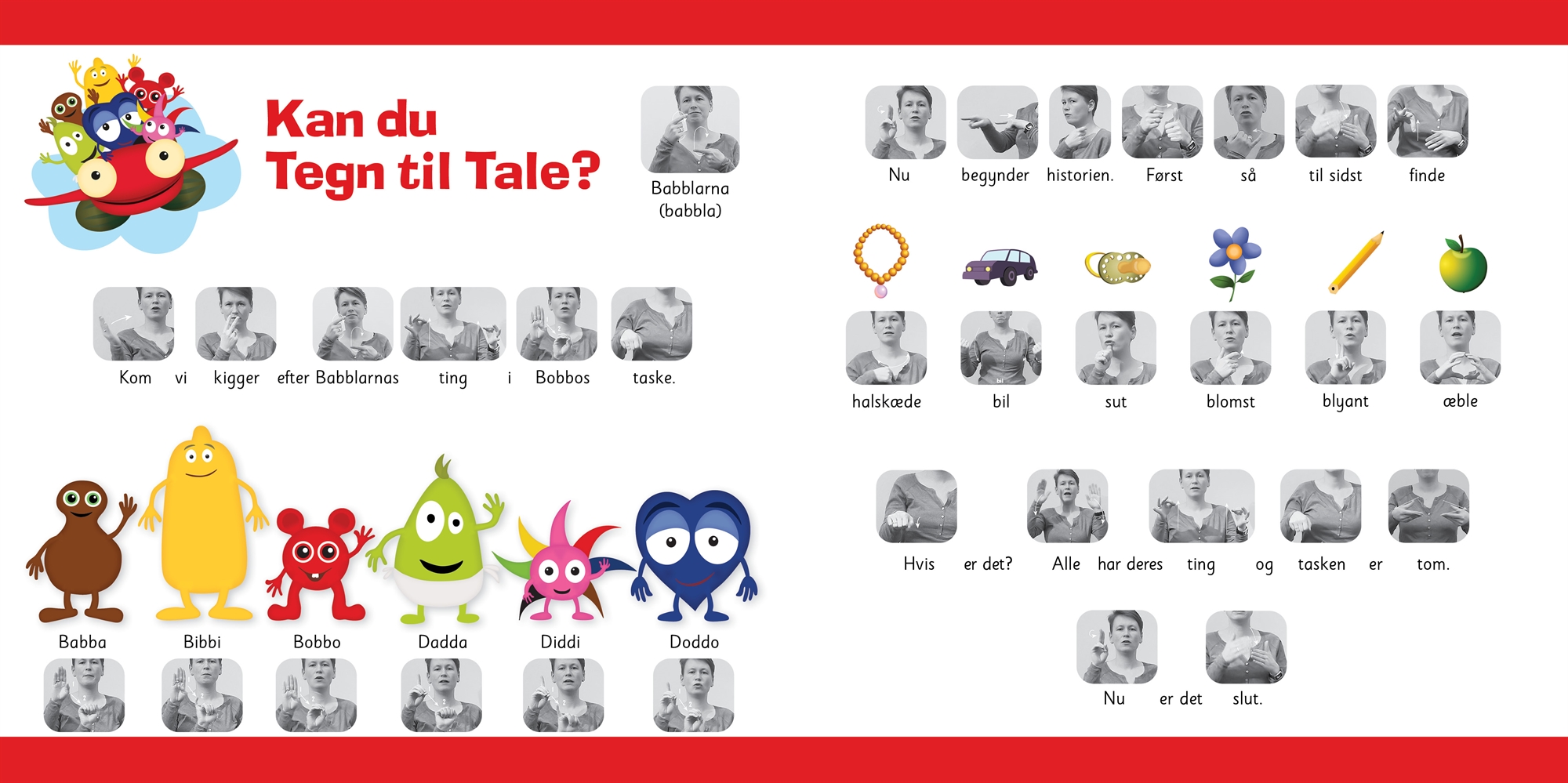 Hjælp Bobbo med at få afleveret alle tingene i tasken tilbage til alle Babblarna vennerne. I bogen I Bobbos taske har Bobbo samlet Babblarna vennernes ting i en taske. Barnet hjælper med at finde frem til, hvem tingene tilhører. Hvem mangler sin blyant og hvem skal have sin blomst tilbage? Bogen er let at bladre i, har fine farver og en tydelig letlæselig tekst. Bogen indeholder ligeledes relevante danske tegn til brug ved tegn til tale. Bogen måler 20 x 20 cm