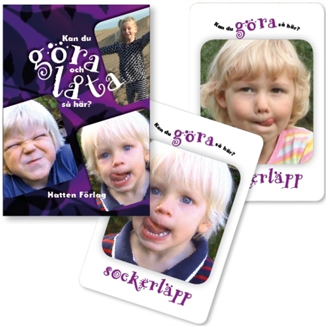 Dette kortspil er en sjov både at få gang i leg, der stimulerer såvel grov motorik som mundmotorik. Kan du lave sukkerlæbe, rosinnæse, smile eller sur filur? Kan du stå på et ben, kravle eller løbe? I kan skiftes til at trække et kort og imitere bevægelsen, sig lyden eller gør bevægelsen. Saml på stik eller lav udfordringerne sammen. Spillet er egnet til såvel børn som voksne. Billederne er taget fra filmene fra HoppHatten, som kan findes på Youtube. Obs! Dette er et svensk materiale, der kan derfor være behov for tilpasning til det danske sprog.